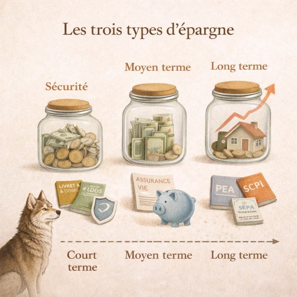 Ce que je vais te montrer ici, c’est simple : il existe les 3 types d’épargne. Chacune joue un rôle et un objectif différent. Mais les 3 contribuent à construire quelque chose de solide. Et une fois que tu les comprends, tu ne regardes plus ton argent de la même manière.
